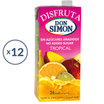 Disfruta Don Simón tropical. Elaborado con naranja, manzana, plátano, mango y maracuyá. Sin azúcares añadidos, bajo en calorías.