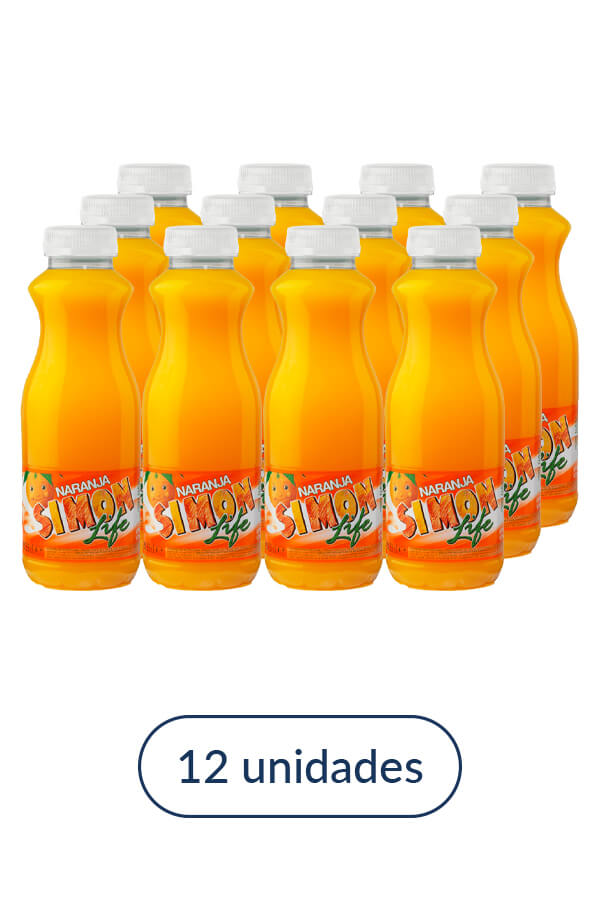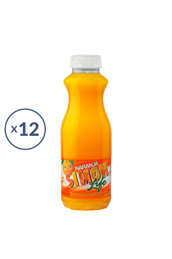 Simon Life de naranja. Bebida refrescante de zumo de frutas con vitaminas A, B6, C y E, sin gas y sin conservantes.