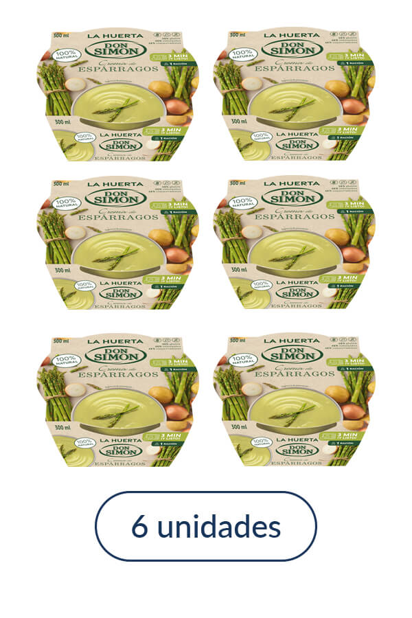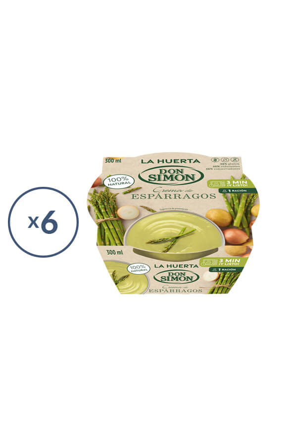 La Huerta de Don Simón asparagus cream, 100% natural. Made with the best selection of fresh vegetables. Ready to eat. 0.3 litre container.