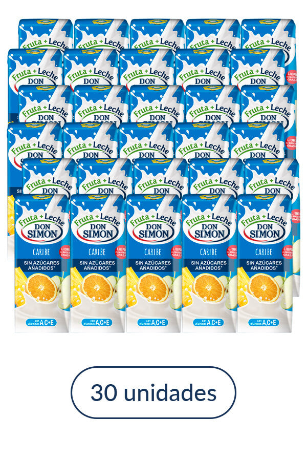 Don Simon fruit + milk, Caribbean flavour. Made with orange, grape, apple, pineapple, lemon and skimmed milk. No added sugars and rich in vitamins A, C and E.