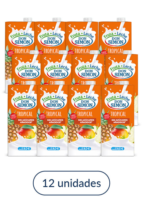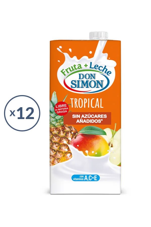 Don Simón Tropical Fruit+Milk. Made with pineapple, grape, mango, apple and skimmed milk. No added sugars and rich in vitamins A, C and E.