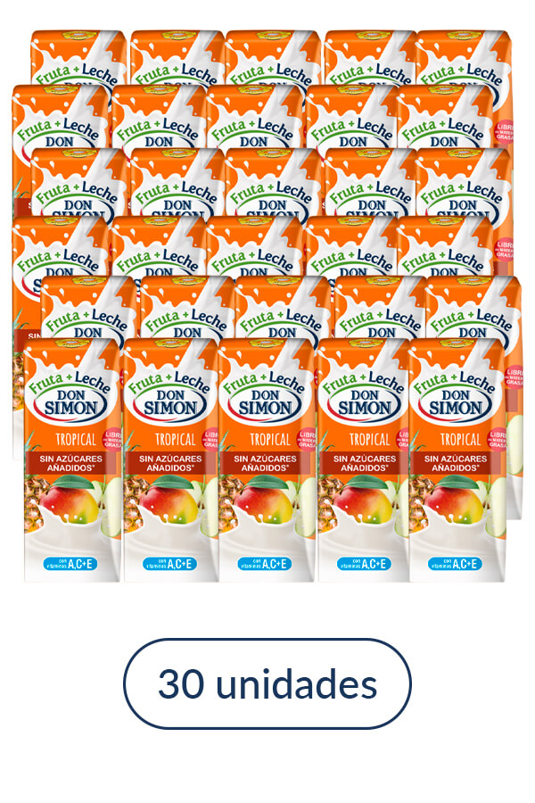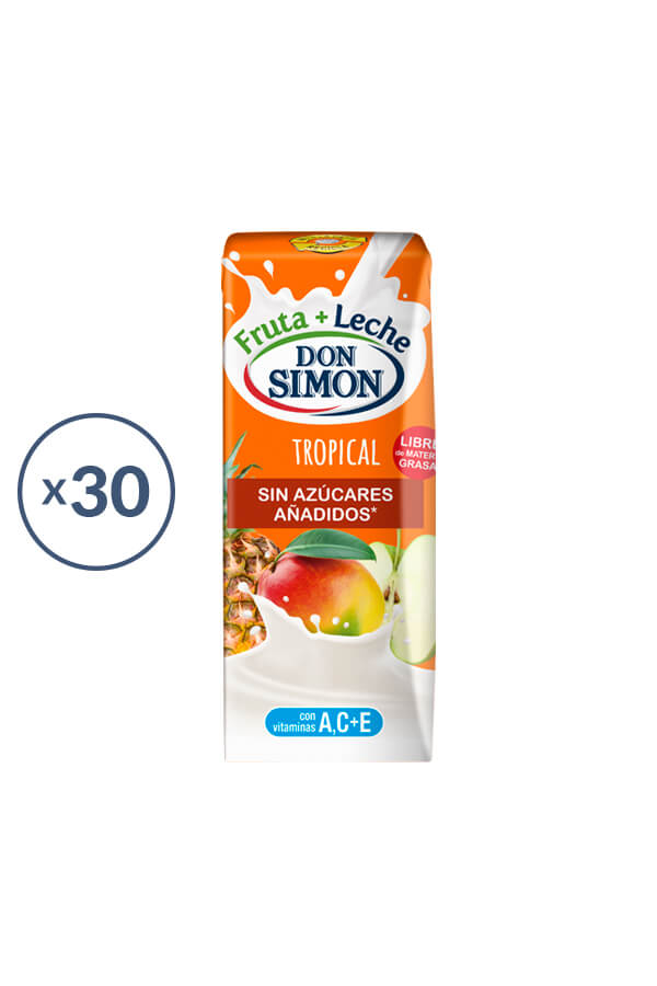 Don Simon Tropical Fruit+Milk. Made with pineapple, grape, mango, apple and skimmed milk. No added sugars and rich in vitamins A, C and E.