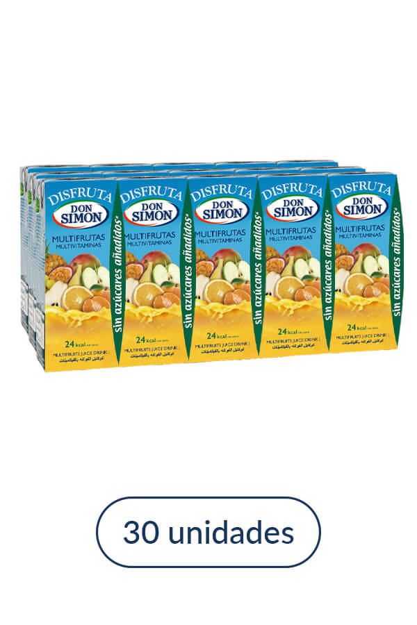 Enjoy Don Simón multivitamin, no added sugars and low in calories with fruit juice. Made with apple, grape, peach, pineapple, orange, mandarin, pear, passion fruit, banana and mango, rich in vitamins.
