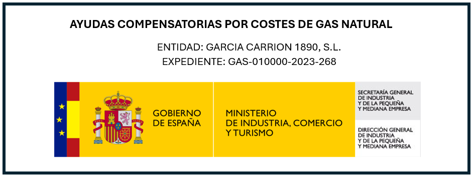 GARCIA CARRION 1890, S.L. ha recibido una subvención para la compensación de los costes adicionales debidos al aumento excepcional de los precios del gas natural financiada por la Dirección General de Industria y Pequeña y Mediana Empresa del MINISTERIO DE INDUSTRIA, COMERCIO Y TURISMO.