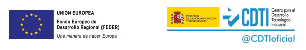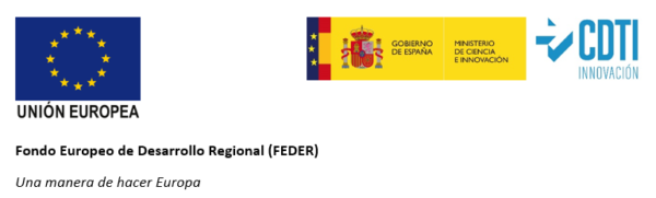 Este proyecto está cofinanciado por el Centro para el Desarrollo Tecnológico Industria (CDTI) y el Fondo Europeo de Desarrollo Regional (FEDER) dentro del Programa FEDER Innterconecta, cuyo objetivo es promover la generación de capacidades innovadoras a través de proyectos de desarrollo experimental.