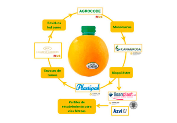 Cítricos del Andévalo, ubicado en Huelva, lidera el consorcio de empresas españolas para el desarrollo del proyecto MIPLASCOE, con el objetivo de fabricar envases y elementos para la industria ferroviaria a partir de bioplásticos producidos por polimerización de monómeros obtenidos por vía fermentativa a partir de la cáscara de naranja.