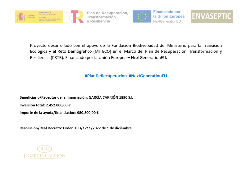 García Carrión 1890, S.L. ha llevado a cabo actuaciones de fortalecimiento industrial del sector agroalimentario dentro del PERTE para impulsar la economía circular mediante el proyecto “Nueva línea eficiente de envasado aséptica para aumento de vida útil de los productos” (ENVASEPTIC)