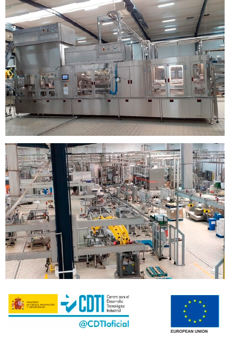 En el proyecto se desarrollará una nueva línea de envasado (sopladora-llenadora-esterilizador-taponador) aséptica de zumos de frutas y bebidas refrescantes a base de zumos sin gas para varios formatos de botellas, que podrá aumentar la vida útil o comercial de los productos producidos, reducir el gramaje de la botella y la generación de residuos, además esta nueva línea posibilitará la utilización de rPET al 100% gracias al reparto de peso, y el envasado utilizando tapones que vayan unidos permanentemente a la botella (tapón solidario). La nueva línea supondrá una mejora significativa en la vida útil del producto terminado gracias fundamentalmente a que por una parte permite la inyección de nitrógeno, permitiendo así el llenado en atmósfera inerte lo que evita oxidaciones del producto que suponen un detrimento de sus características organolépticas y el rechazo del consumidor y por otra parte a que la nueva línea aséptica cuenta también con un sistema de esterilización más eficaz permitiendo incluso la esterilización previa de la preforma de la botella lo que garantizará menos contaminaciones microbiológicas todo lo que se traducirá además en una importante reducción de los residuos alimentarios generados.