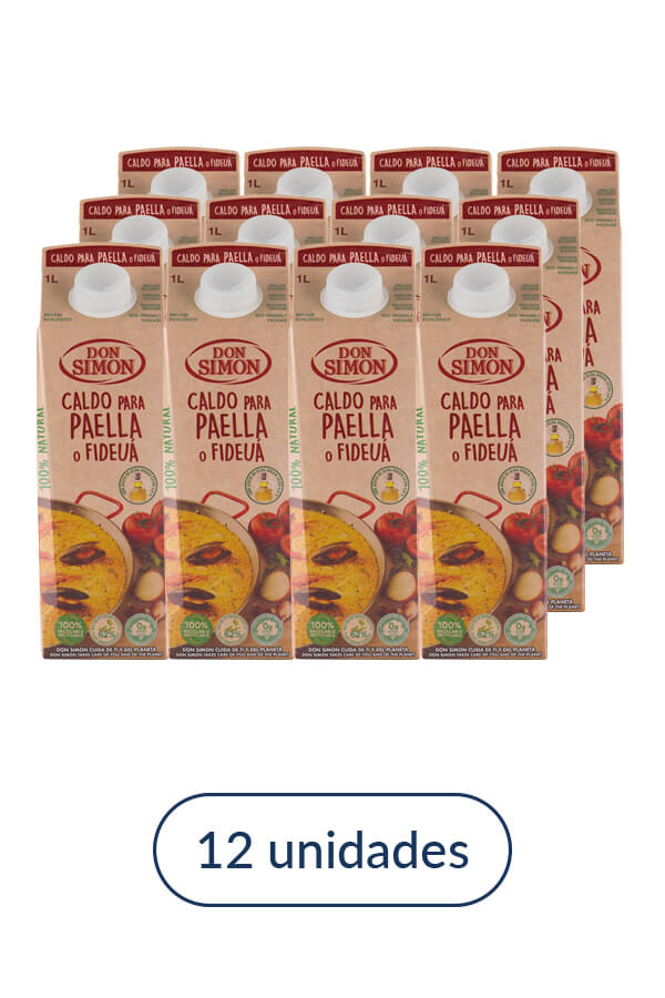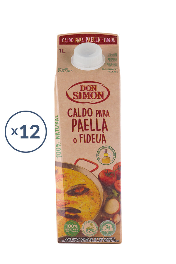 Caldo Don Simón 100% natural especial para paella o fideuá. Elaborado con productos naturales sin colorantes ni conservantes. Nuestra exclusiva receta le otorga un sabor único y garantiza el éxito en la mesa.
